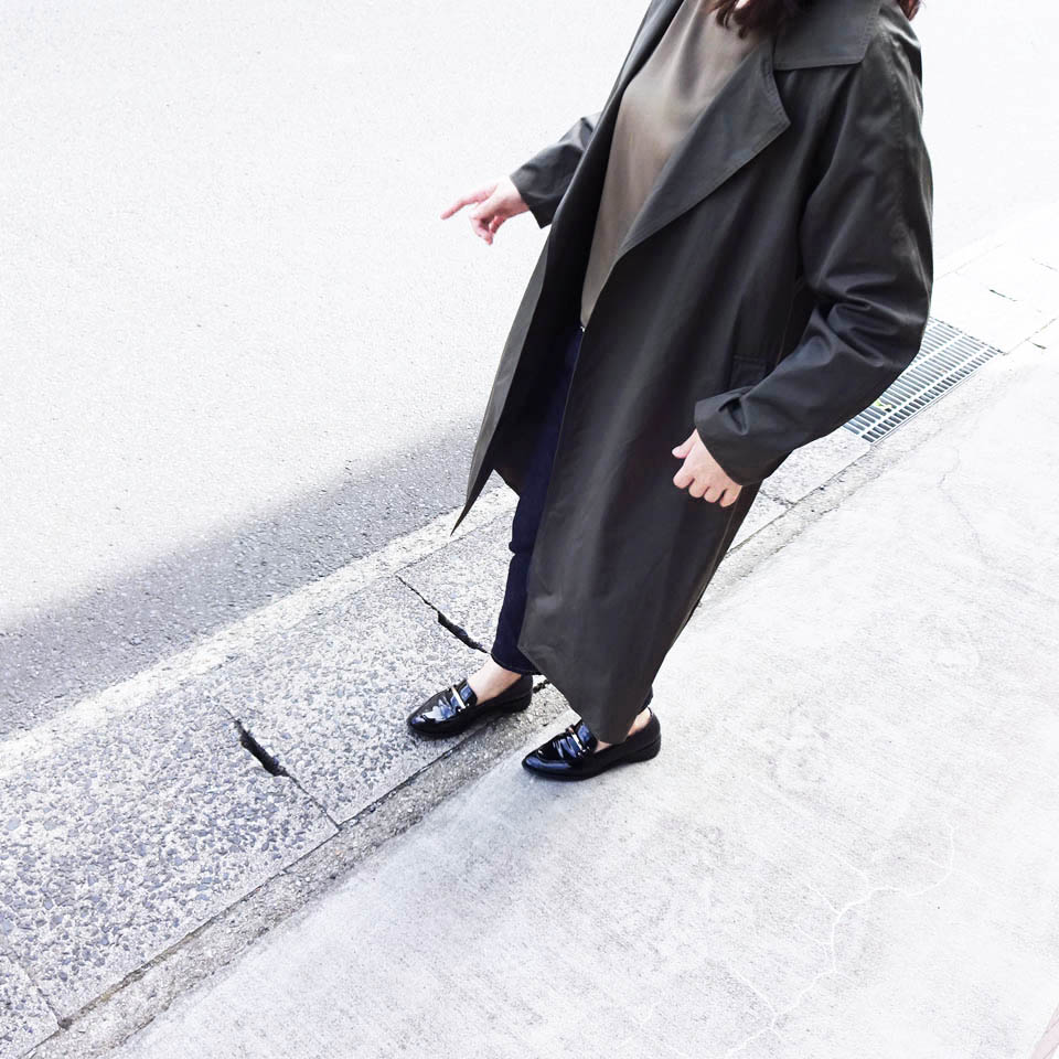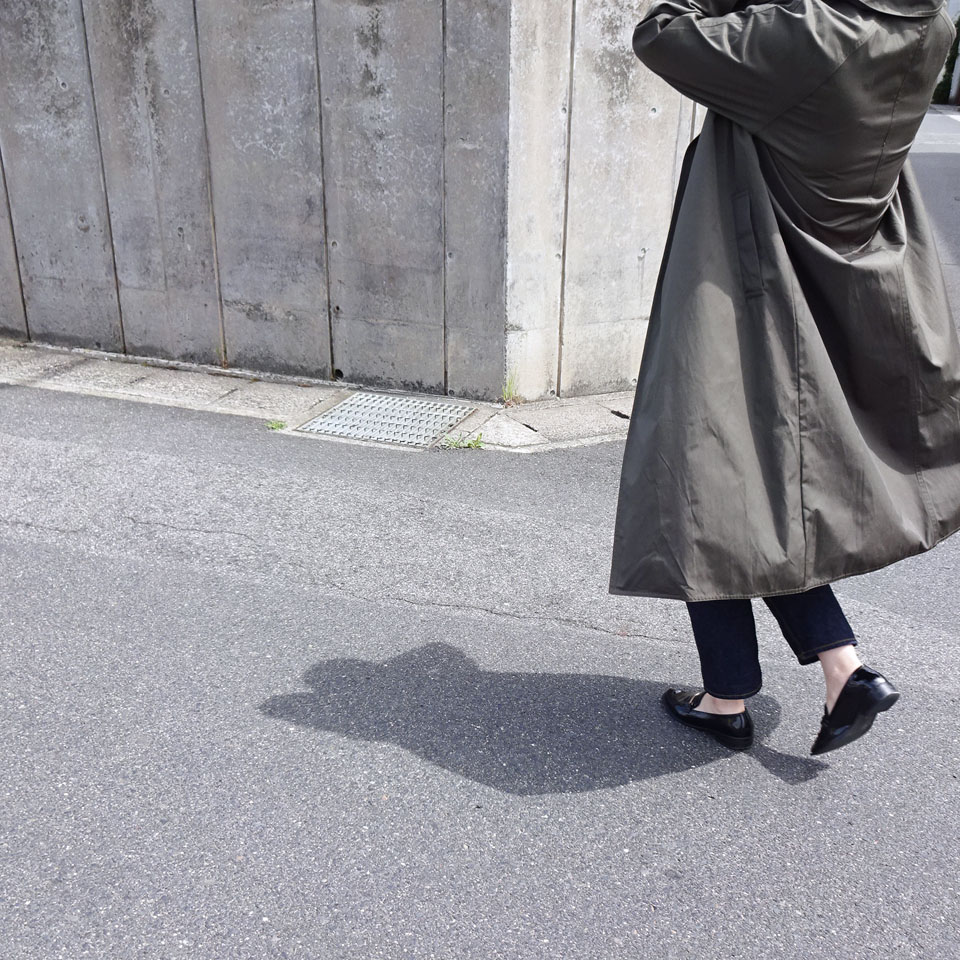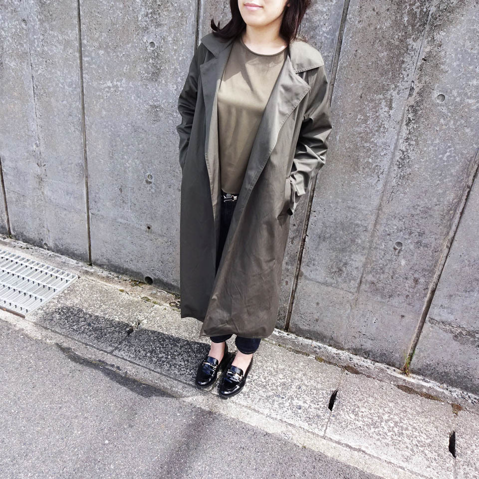 Detail : 程よいつや感とハリのある素材。裏地が無いので早い時期から活躍できるコートです。