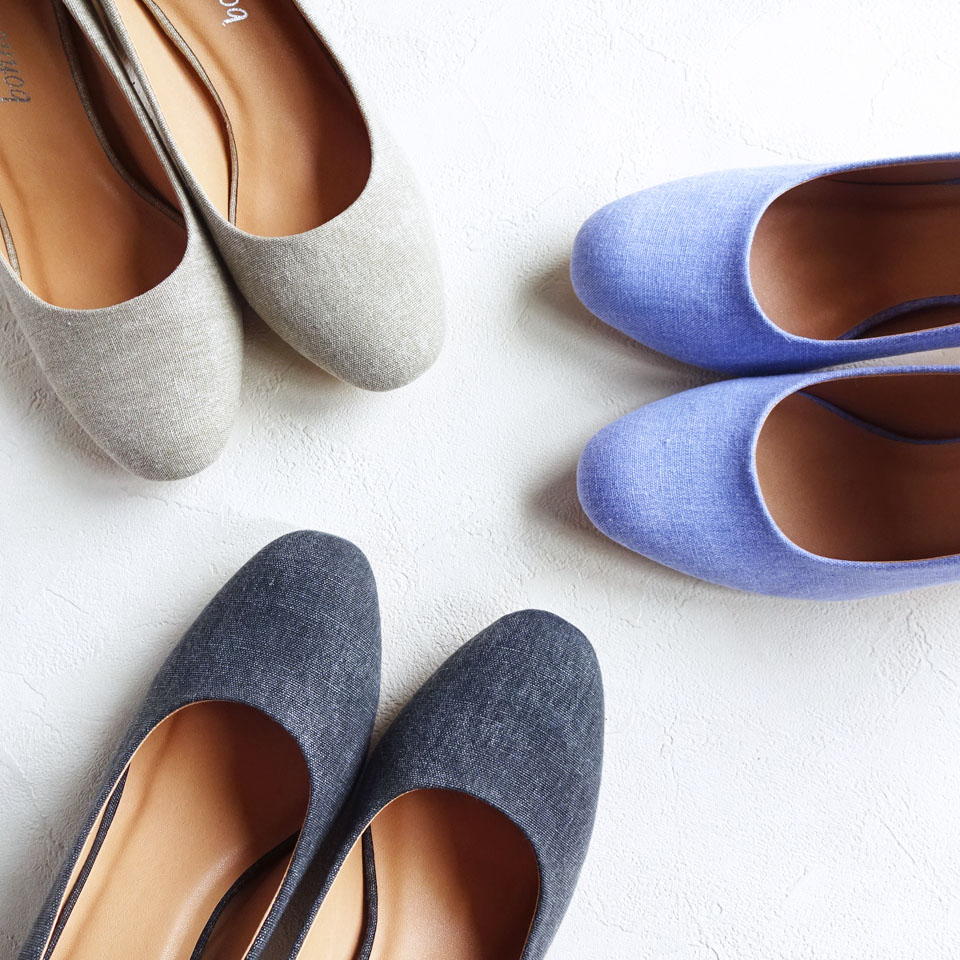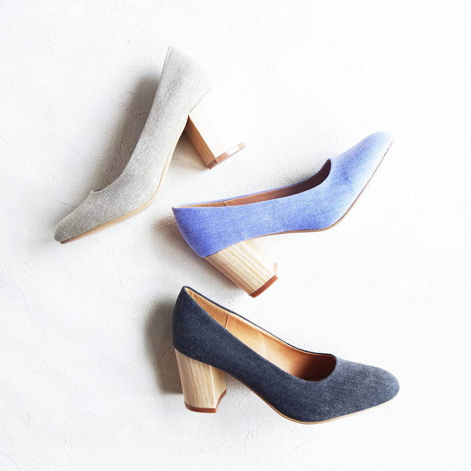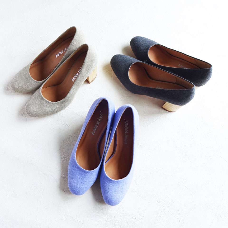 ワイドヒールコットンクロスパンプス bonne volonte 6,900yen +tax