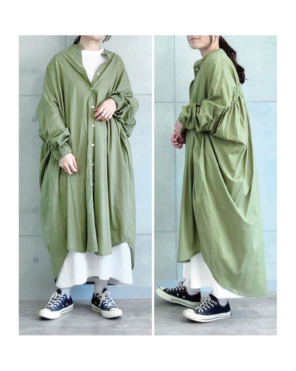 袖口ゴム バックギャザー ワイドシャツワンピース AUG 10,780yen tax incl.