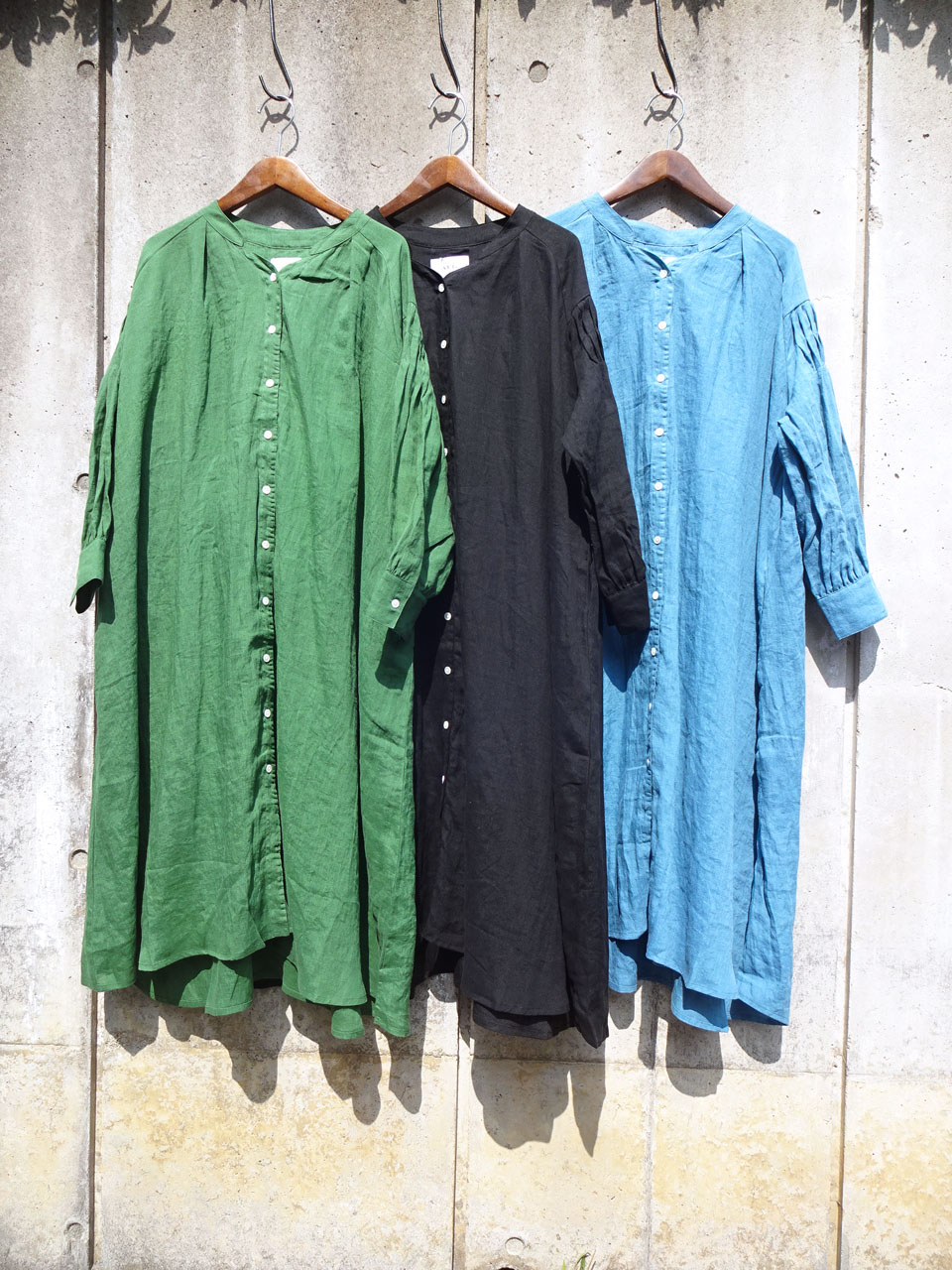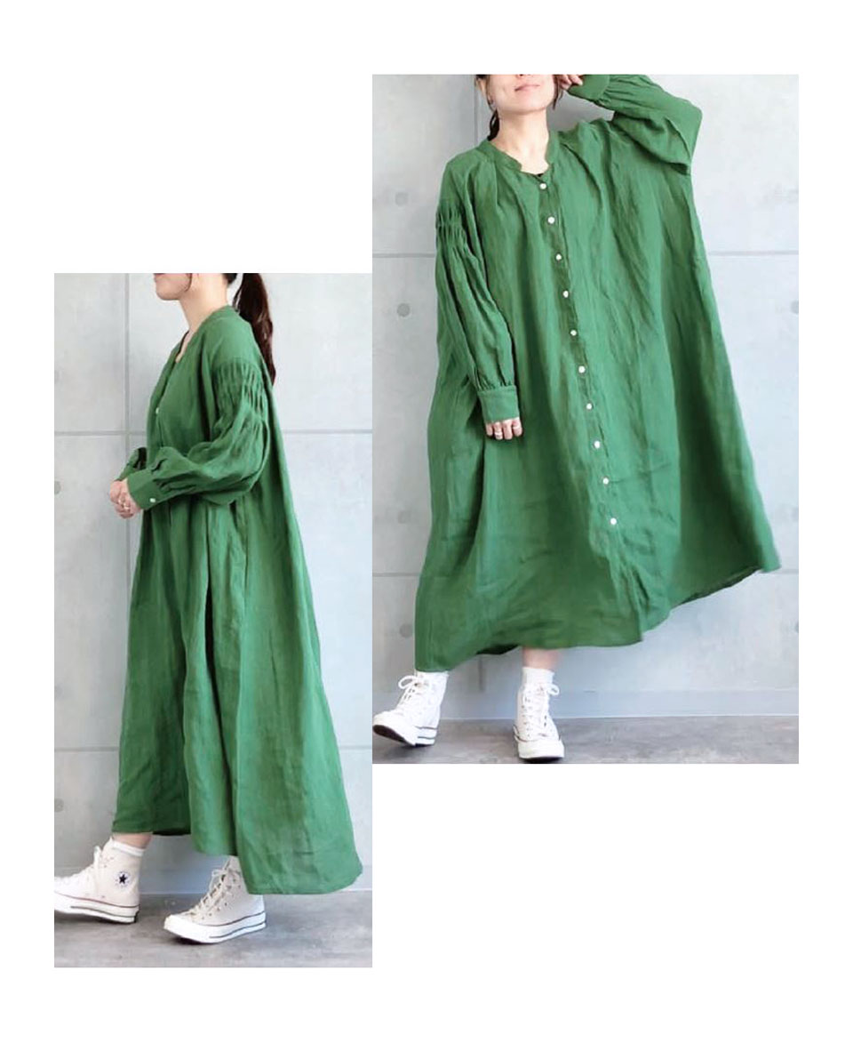 リネン 肩シャーリング シャツワンピース AUG 15,400yen tax incl.