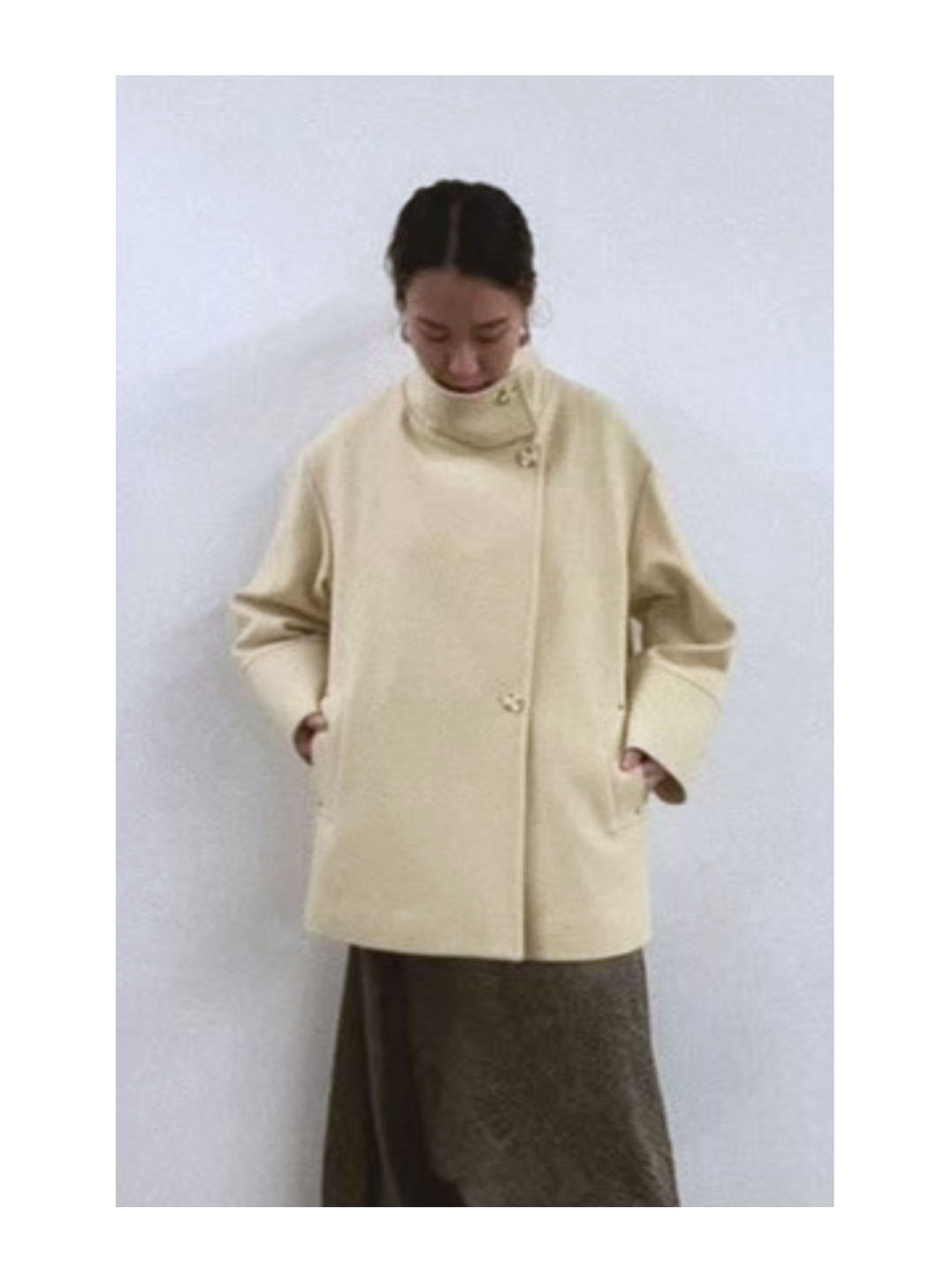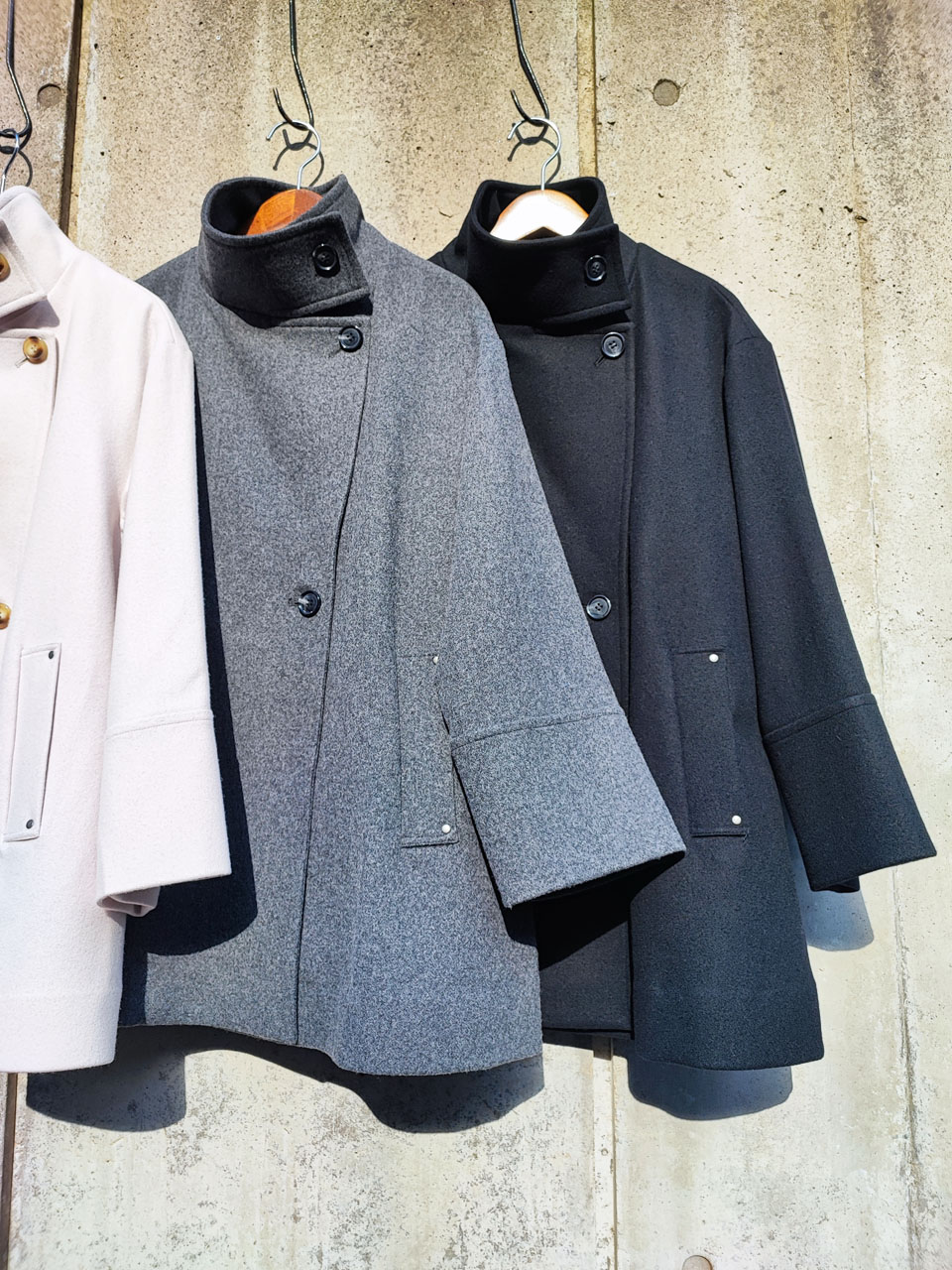 Wool 100 スタンドカラーフレアコート 40,700yen